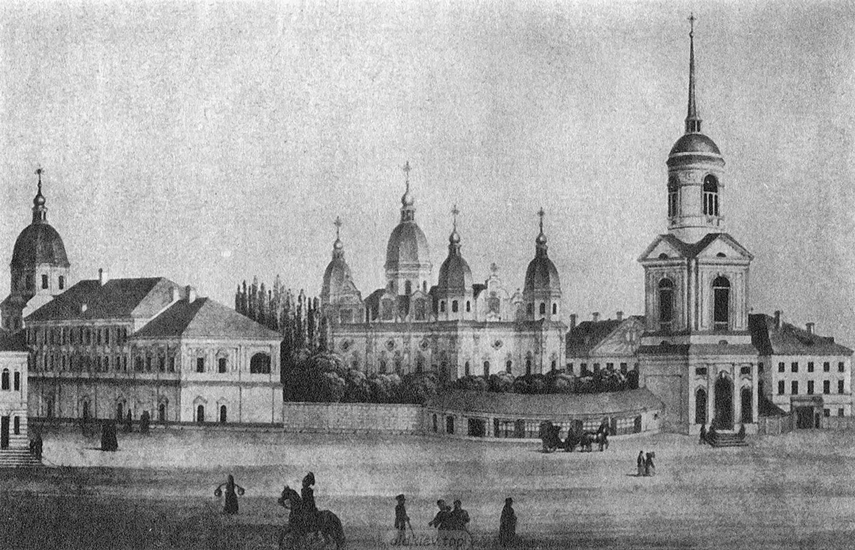 1840-ті рр. Дзвіниця та Богоявленський собор Києво-Братського монастиря на Подолі |
