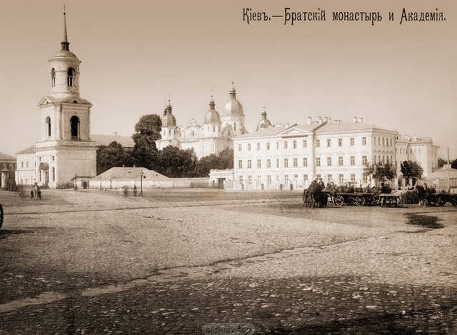1901р. Дзвіниця та Богоявленський собор Києво-Братського монастиря на Подолі |