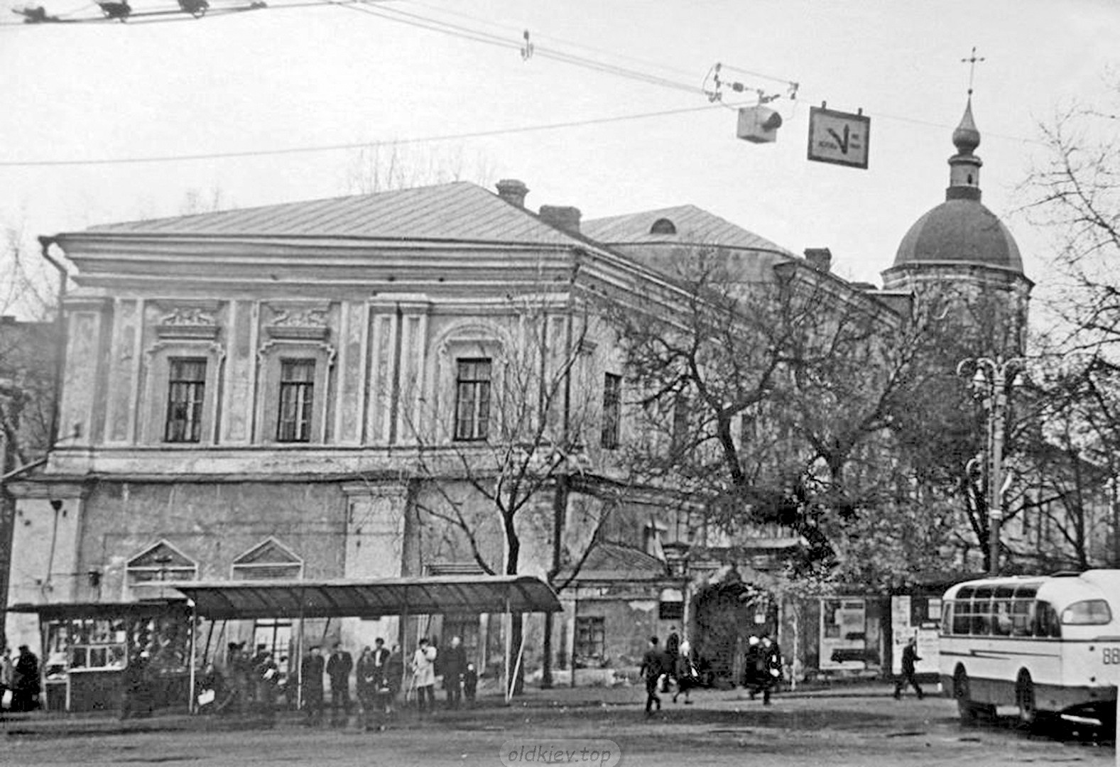 1970-ті рр. Кінцева автобусна зупинка на Червоній площі (нині Контрактова площа) на Подолі |