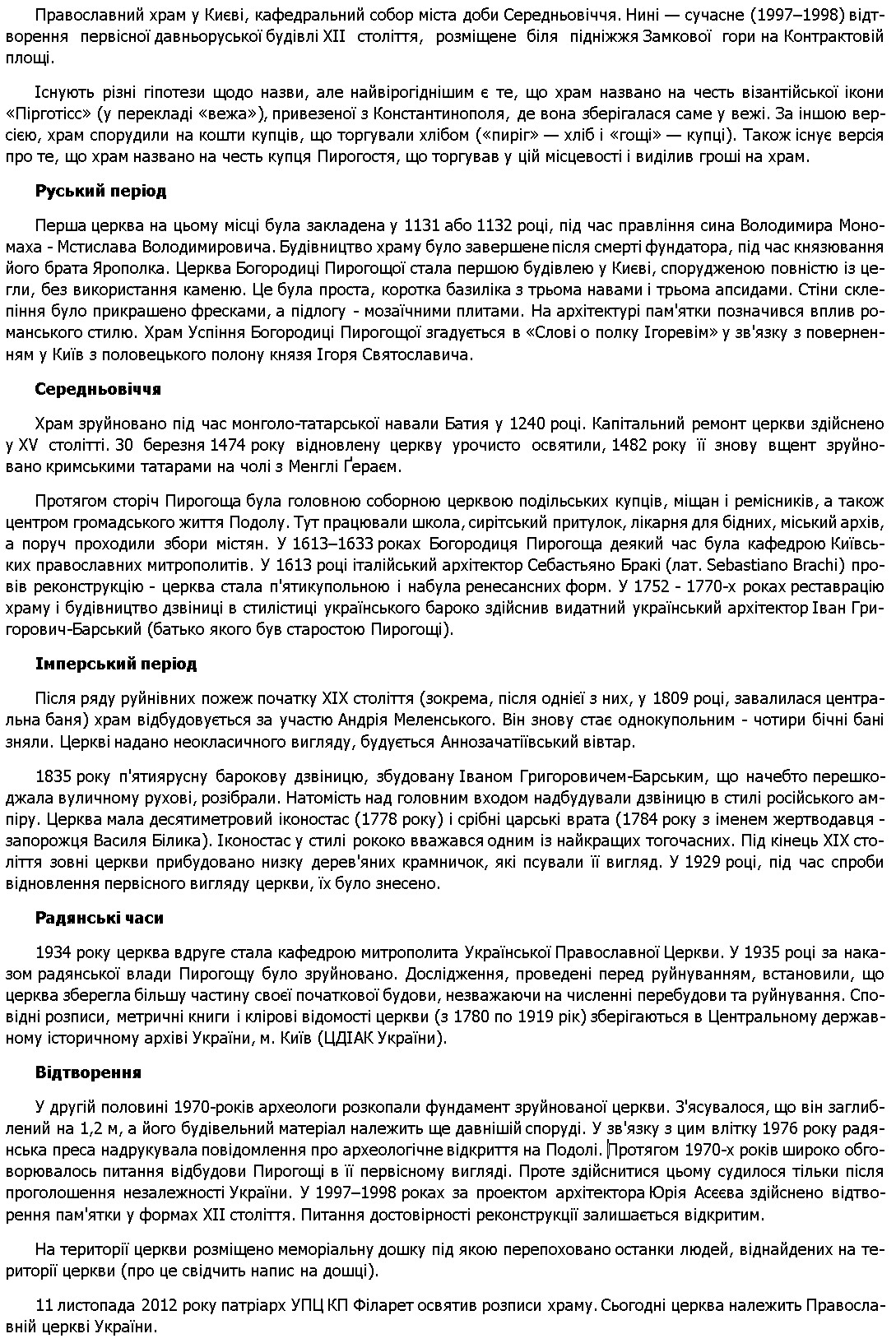 Церква Богородиці Пирогощі на Подолі 1132 року |