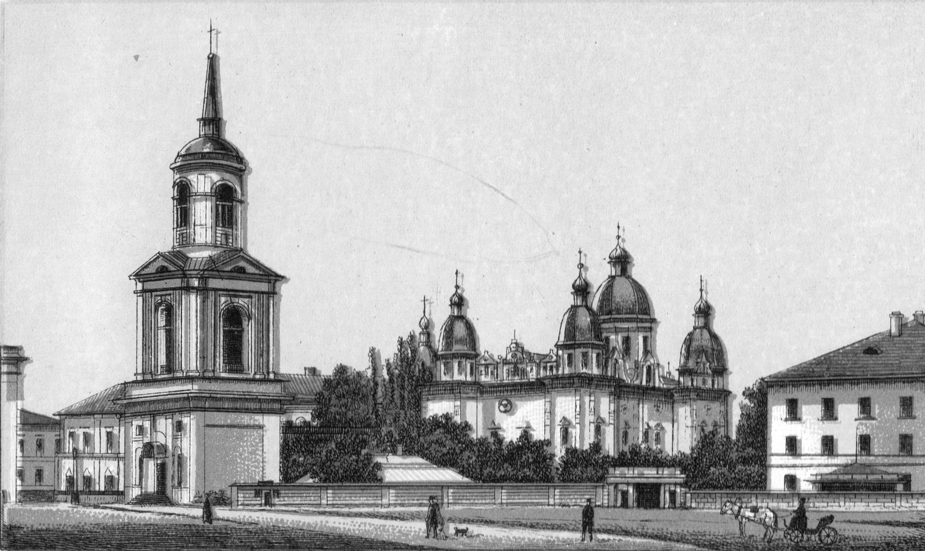 1840-ті рр. Дзвіниця та Богоявленський собор Києво-Братського монастиря на Подолі |