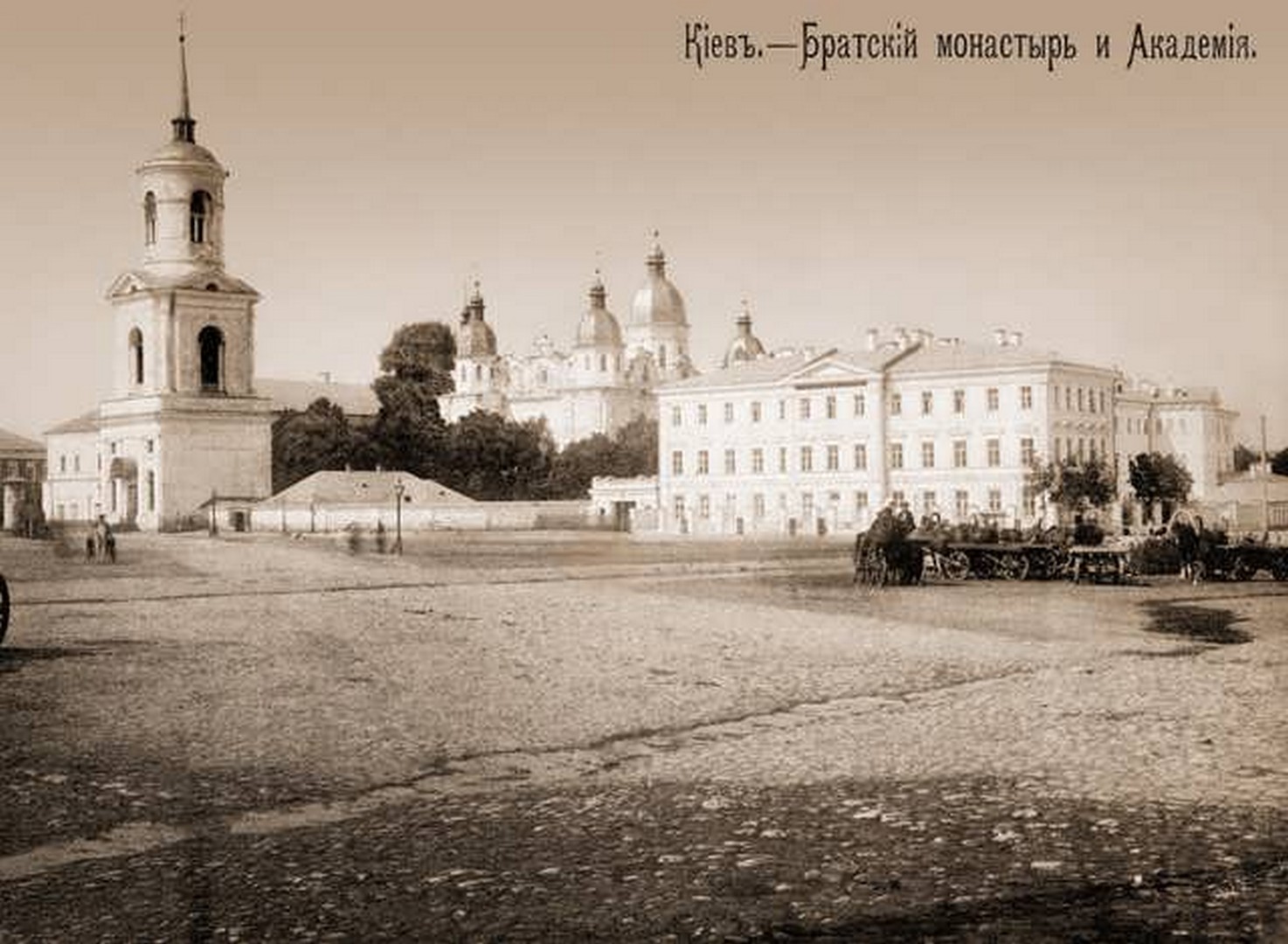 1901р. Дзвіниця та Богоявленський собор Києво-Братського монастиря на Подолі |