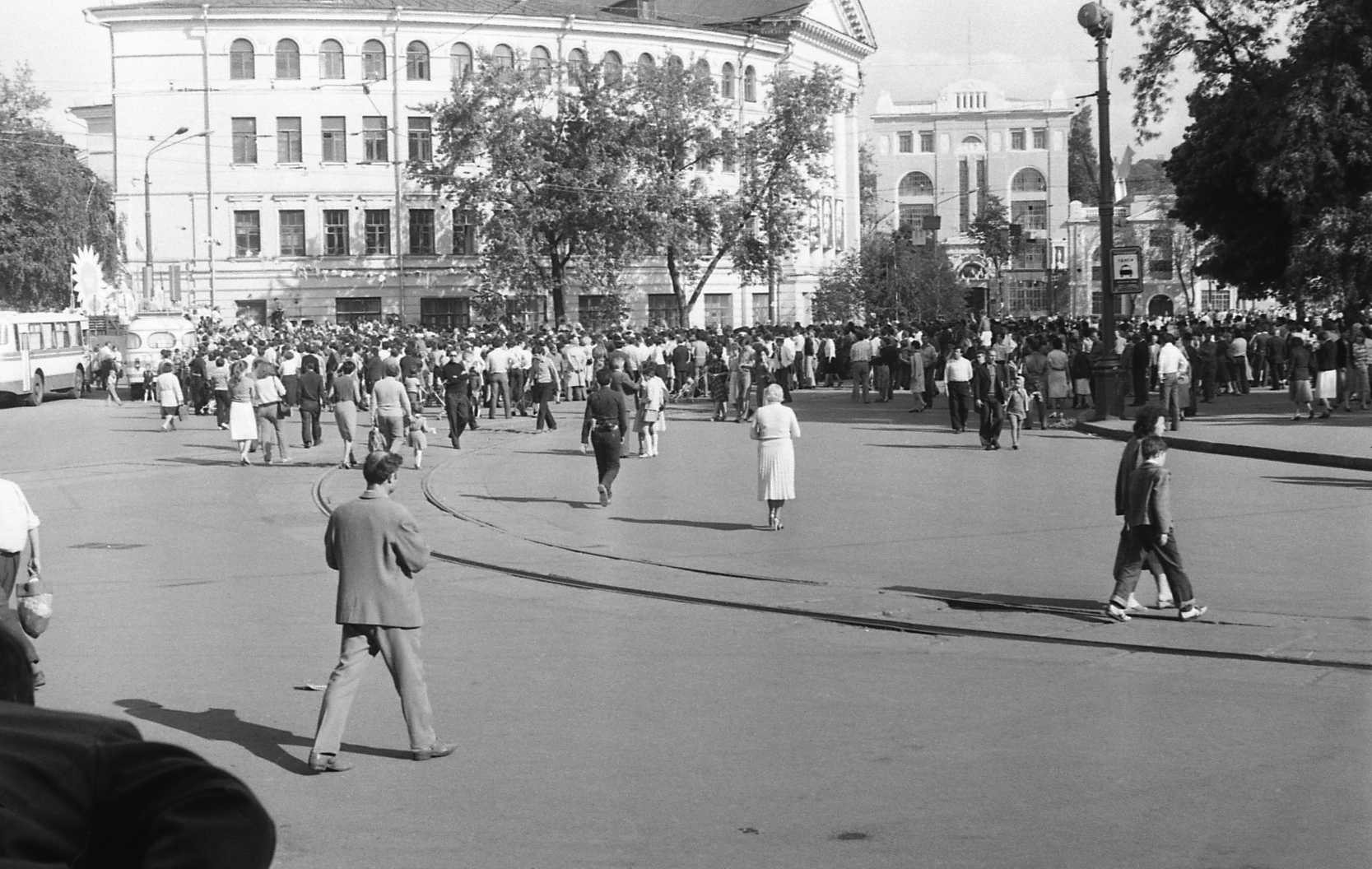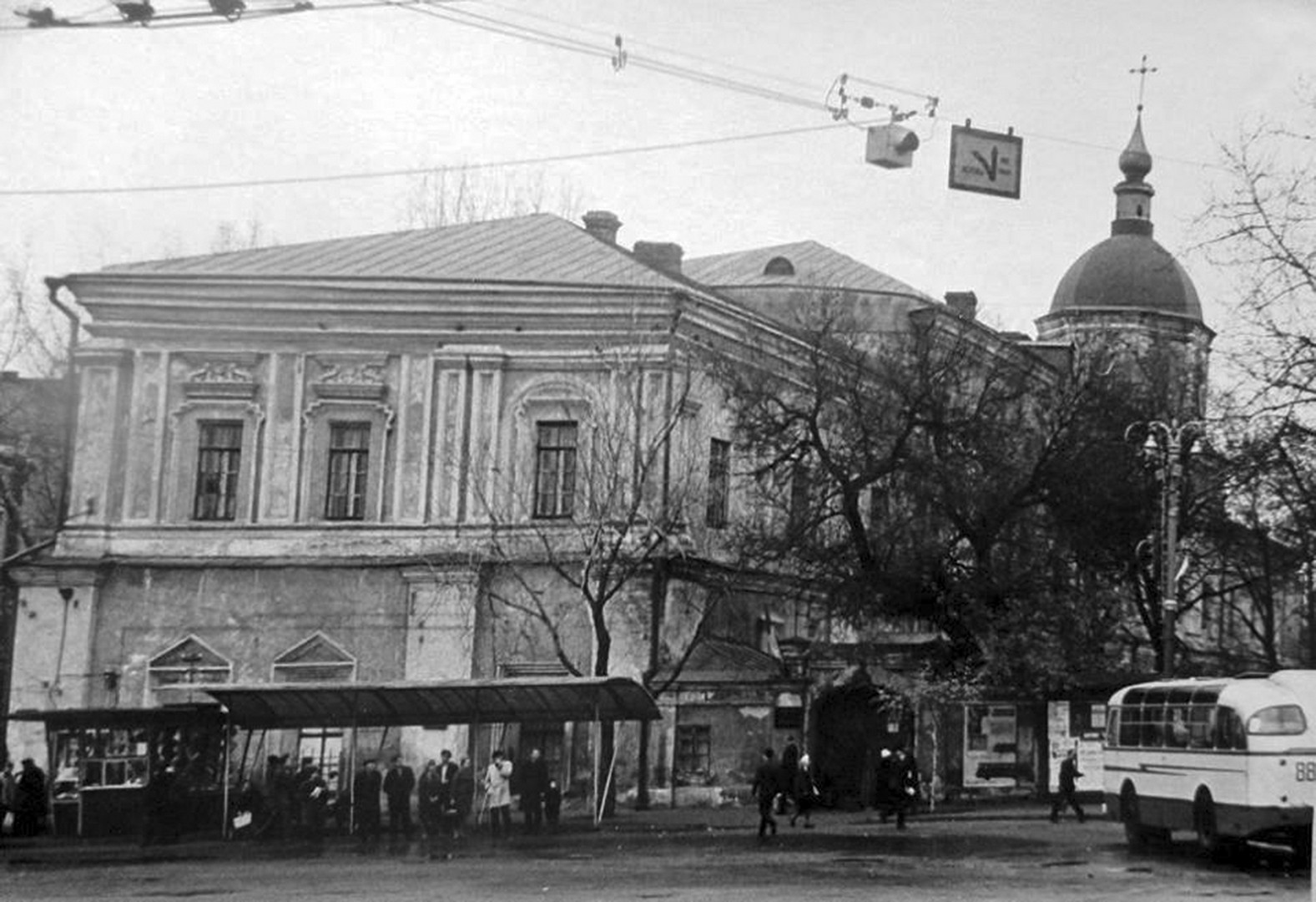 1970-ті рр. Кінцева автобусна зупинка на Червоній площі (нині Контрактова площа) на Подолі |