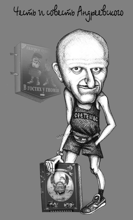 В течение последнего десятилетия на углу Пушкинской и Прорезной можно встретить обрюзгшего неряшливого человечка с бегающими глазками, с солидной проплешиной и вислыми усиками. Он постоянно отирается возле актеров категорий «Б» и «Г» театров Русской драмы, им. Франко и Молодежного.