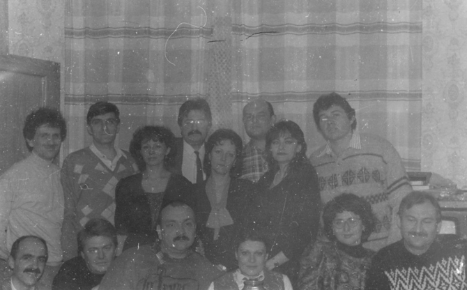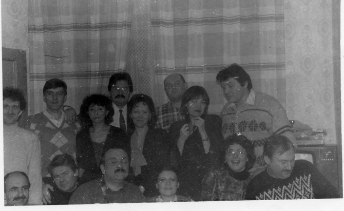 1995г. декабрь.Печерск. первый ряд: Петрусенко Пётр, Власов Николай, Сахно Владимир, Нечаева Татьяна, Антоша Оксана, Вороневич Валентин. второй ряд: Маковский Евгений, Фогель Валерий, Лисовская Елена, Ерасов Олег, Кузнецова Тамара, Кацимон Игорь, Клокова Тамара, Щуревский Владимир. |